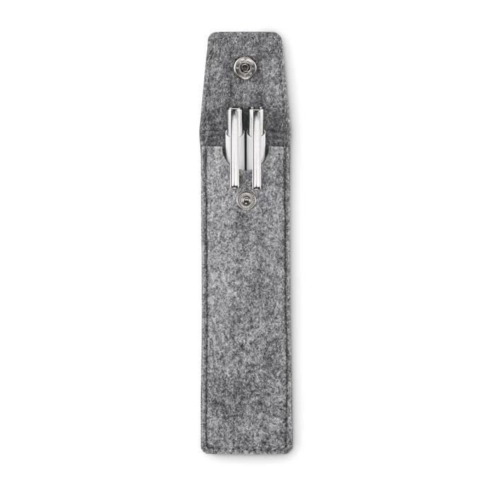 Elevate your brand with the CENCIL RPET felt pencil case, a sustainable choice crafted from recycled PET felt. This compact pen case holds up to two pens securely with its reliable snap button closure, perfect for everyday use or promotional handouts.