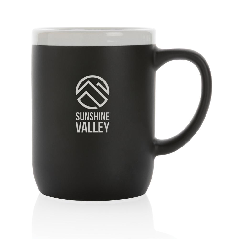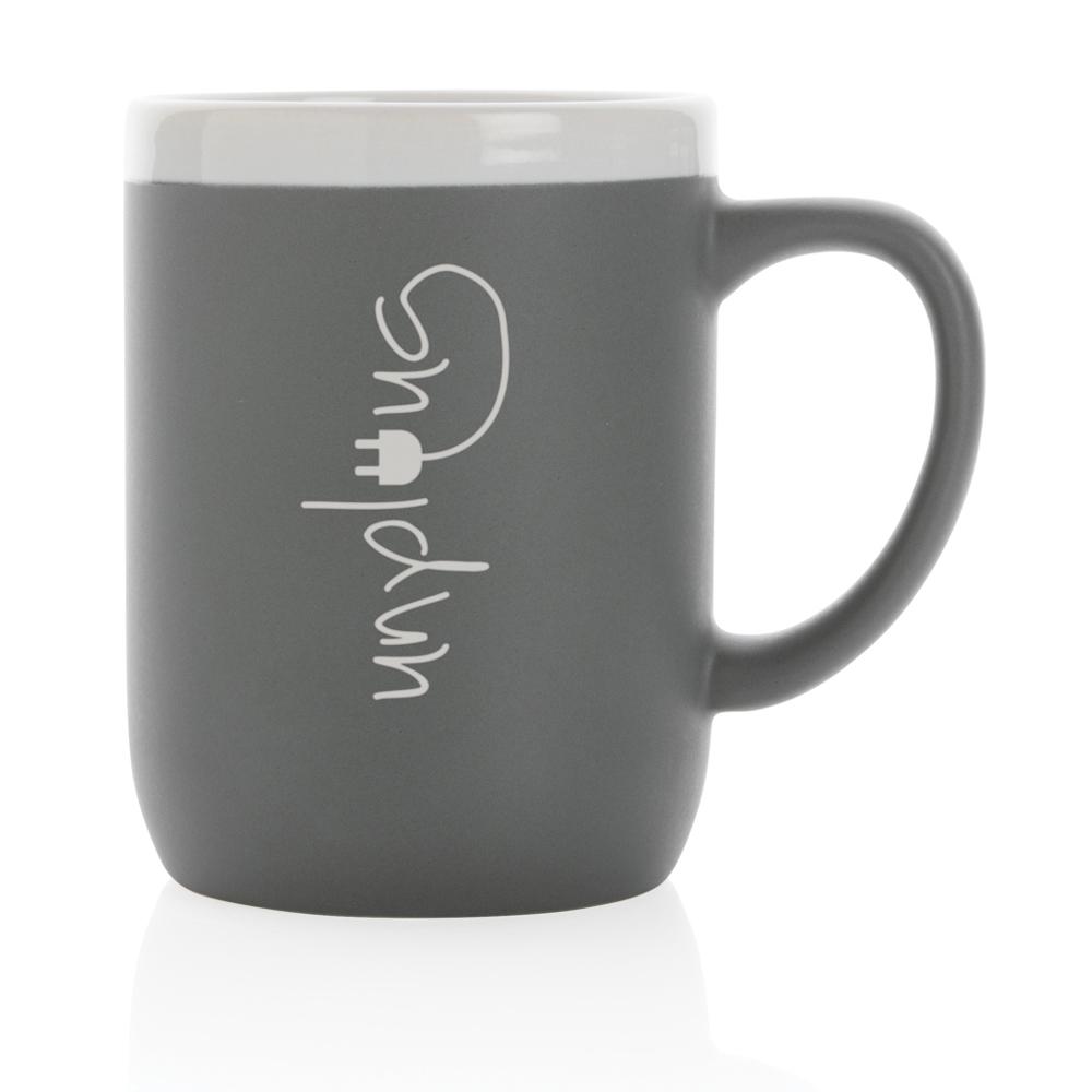 Elevate your brand with this sleek 300ml ceramic mug, perfect for personalization with your logo. Its clean, simple design fits any setting, from office desks to event tables. Enjoy the premium contrast of a shiny inner finish for easy cleaning and a matt outer finish for a modern, professional grip.