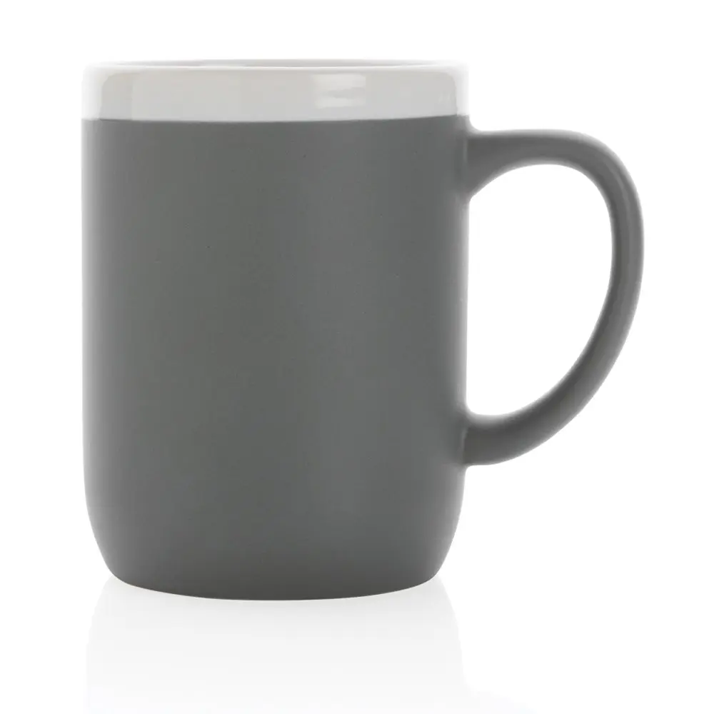 Elevate your promotional giveaways with this sleek ceramic mug featuring a refined rim detail for a sophisticated touch. Its shiny inner finish ensures easy cleaning and a premium feel, while the matte outer surface provides a modern, non-slip grip that's ideal for everyday use.