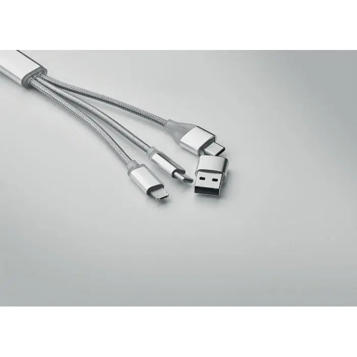 Elevate your brand with our personalized Charging Cable Key Ring, featuring four versatile connectors: 2-in-1 Type-C & Type-A inputs, Micro-B (2-in-1 pin), and Type C output. Crafted from durable aluminum, this compact 2-in-1 accessory combines a functional keychain with essential charging capabilities, ensuring your recipients stay powered up on the go.