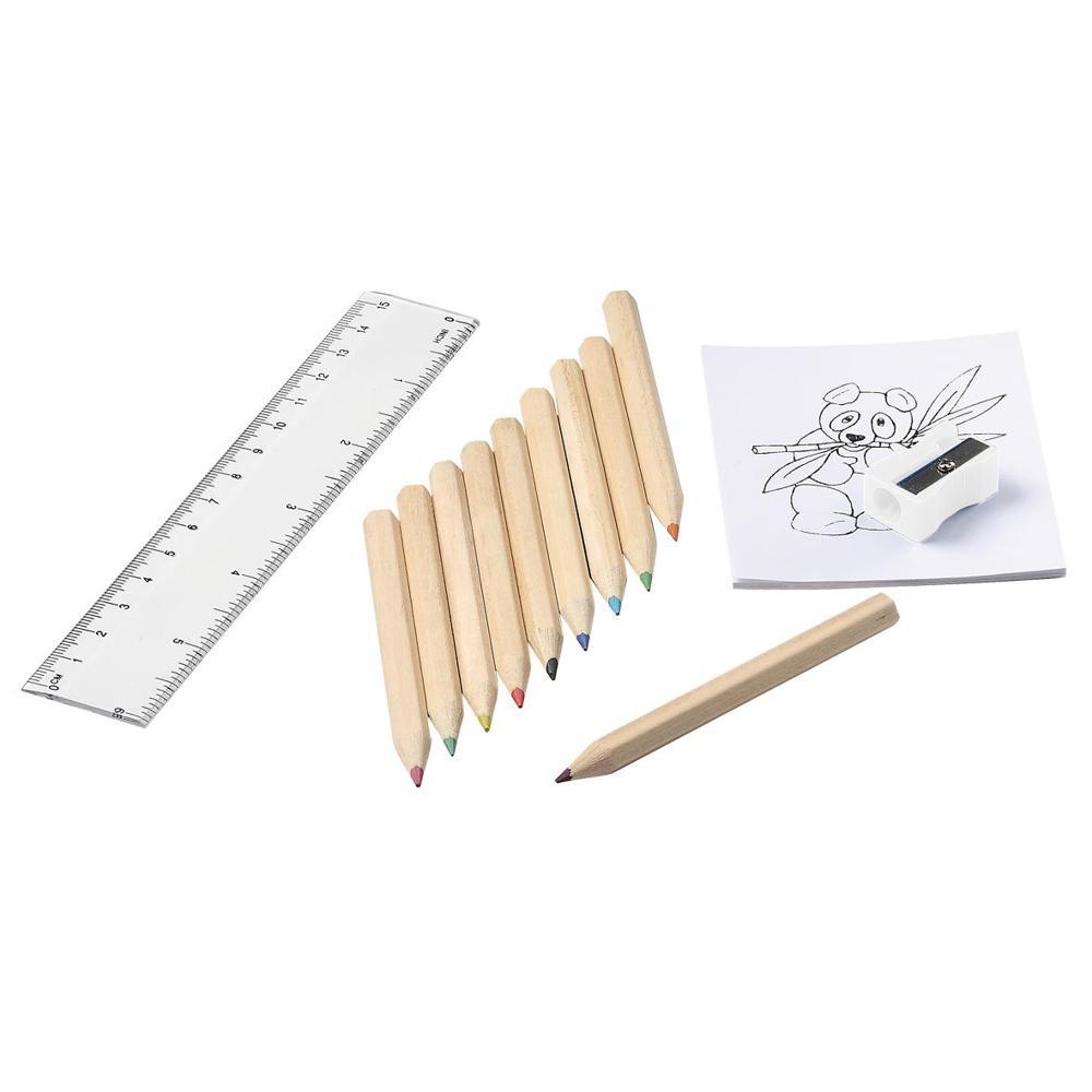 Elevate your promotional giveaways with this sustainable children's colouring set, ideal for marketing campaigns, events and corporate gifting. Packed in natural cartons, each set includes 10 hexagonal pencils from natural wood, a 20-page colouring book with varied designs, a plastic sharpener and a dual-scale ruler (cm and inch).