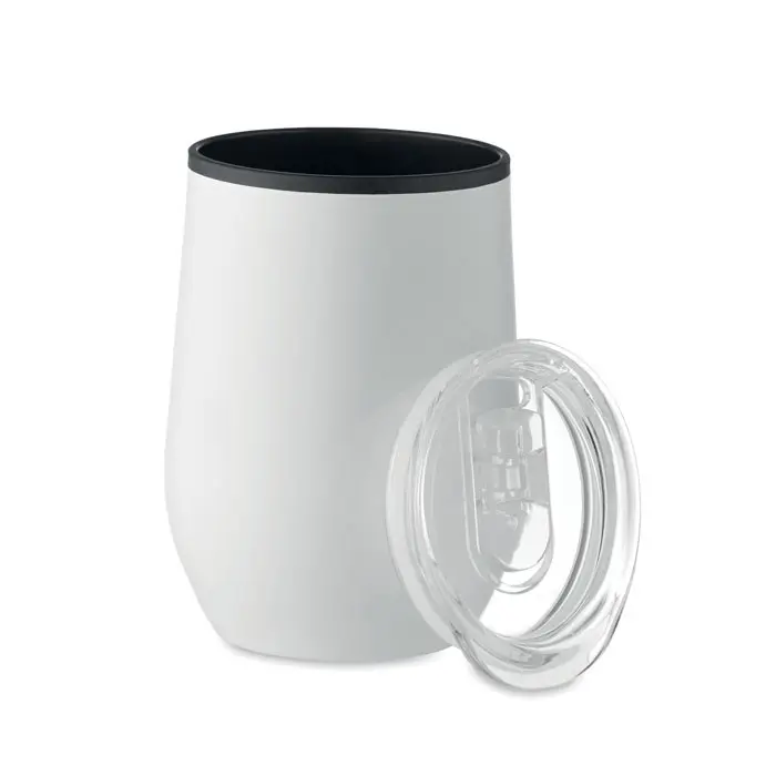 Elevate your branding with this versatile double wall stainless steel travel cup, designed for on-the-go convenience. With a generous 350 ml capacity, it features an inner PP lining and a transparent PS lid to keep beverages secure and spill-free.