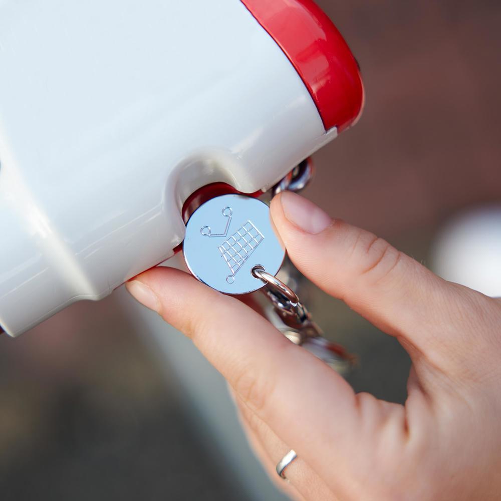 Elevate your brand visibility with the Chip keyring "Elegance", a practical metal shopping cart chip featuring a sturdy carabiner hook and keyring for everyday convenience. This durable accessory keeps essentials always at hand, perfect for quick supermarket trips or daily errands.