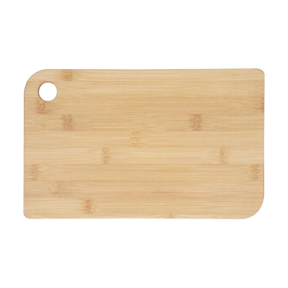 Crafted from rapidly renewable bamboo, it aligns perfectly with eco-conscious branding, appealing to environmentally aware recipients. The practical grip hole simplifies handling and storage, making it a practical kitchen essential that keeps your brand visible during meal prep.