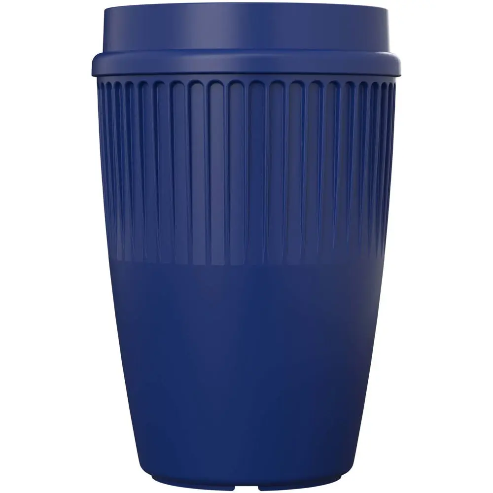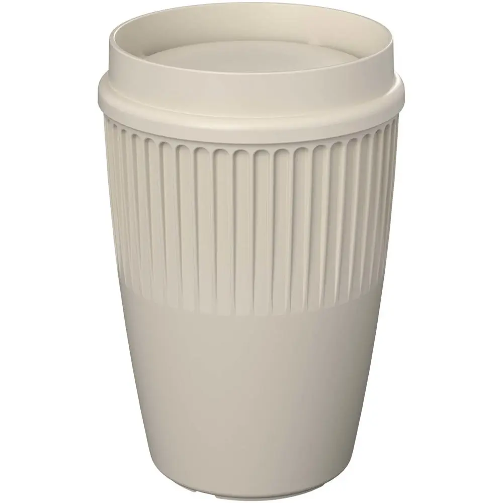 Crafted from durable PP plastic for the body and MDPE plastic for the lid, both fully recyclable, this tumbler measures 13 x 8.6 cm for easy portability. Insulating ridges ensure a comfortable grip, preventing slips during use. The innovative 360° lid lets users sip from any angle, enhancing convenience on the go.