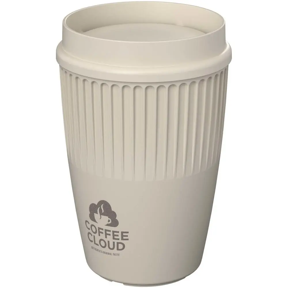 Elevate your brand with the Cirrus 350 ml tumbler featuring a revolutionary 360° clip-on lid. This single-walled PP and MDPE plastic vessel measures 13 x 8.6 cm, offering a sleek design with insulating ridges for secure, comfortable grip during events or daily use.
