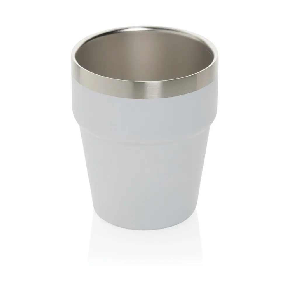 Elevate your brand with our personalized double wall coffee cup, ideal for marketing campaigns and events. Crafted from 100% RCS-certified recycled stainless steel, this 300ml tumbler ensures a sustainable choice that aligns with eco-conscious values, boasting full traceability in its recycled supply chain.