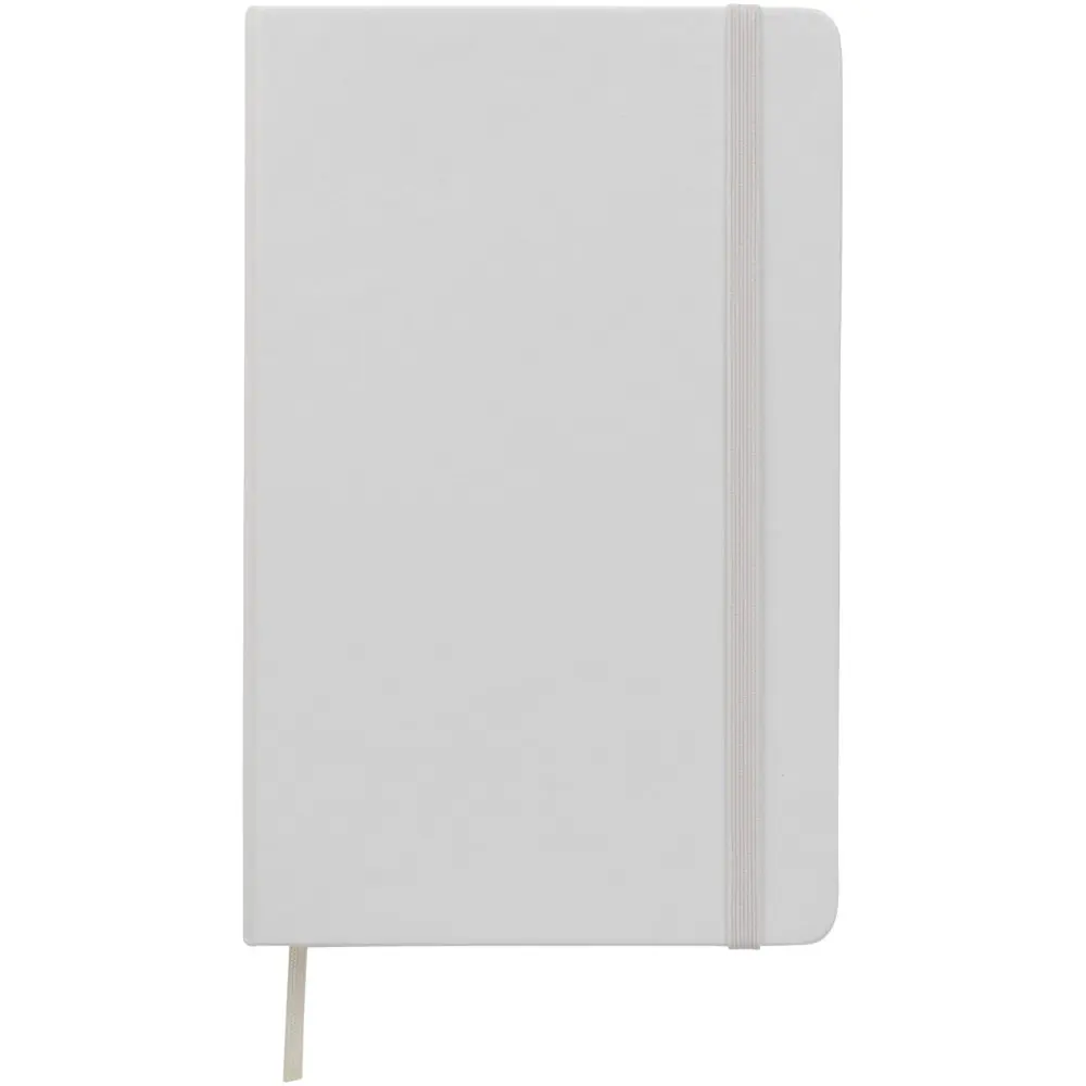 This notebook measures 21 x 1.5 x 13 cm and features a sturdy cardboard bound cover with rounded corners for a sleek, professional finish. Crafted from leatherette paper, it ensures longevity and a premium feel that reflects your brand's quality.