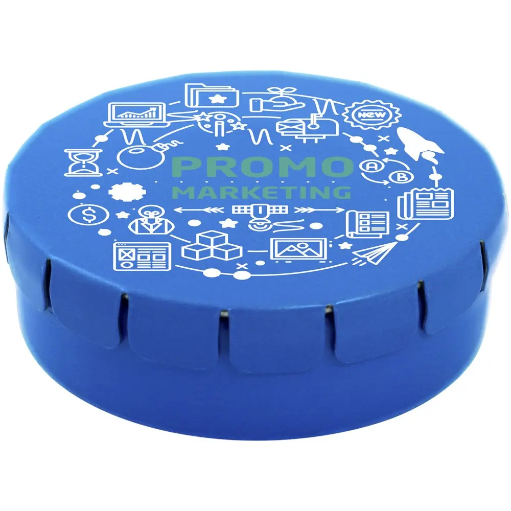 Choose from versatile fillings like classic mints, extra strong or sugar-free mints, fruit drops, heart-shaped strawberry candies, cinnamon treats, lemon and mint sweets, or premium chocolates. Ideal for marketing professionals and event organizers, these pocket-sized tins make memorable handouts that keep your message fresh and portable, enhancing customer engagement and loyalty.