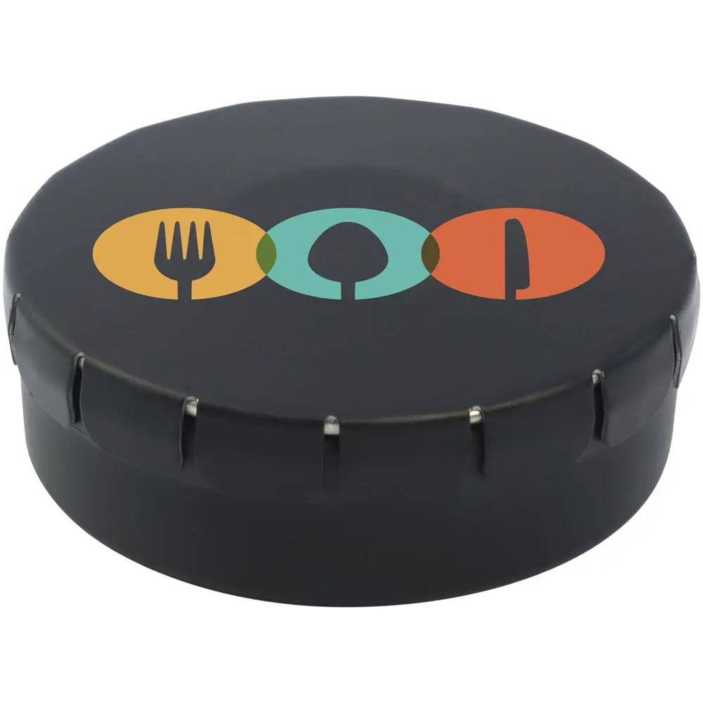 The Clic Clac Chocolates offer a smart, compact solution for branded promotional giveaways. Housed in durable tin containers (1.5 x Ø 4.5 cm) with an easy-press opening, these mint tins ensure effortless access for recipients. Personalize the lid with full-color digital print to prominently display your company logo, boosting brand visibility at events or client meetings.