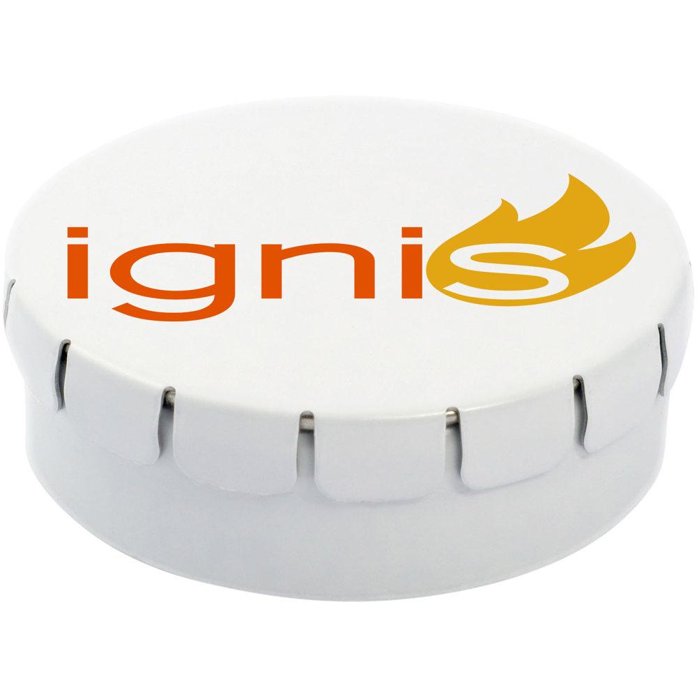 Elevate your promotional giveaways with these cinnamon-flavored sweets housed in a durable metal tin featuring an easy-press opening for effortless access. The compact 45mm diameter design slips easily into pockets or bags, making it ideal for events, trade shows, or client appreciation gifts.