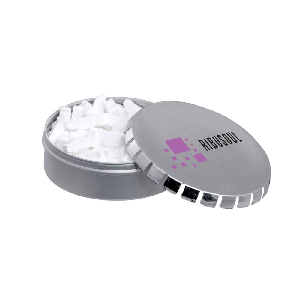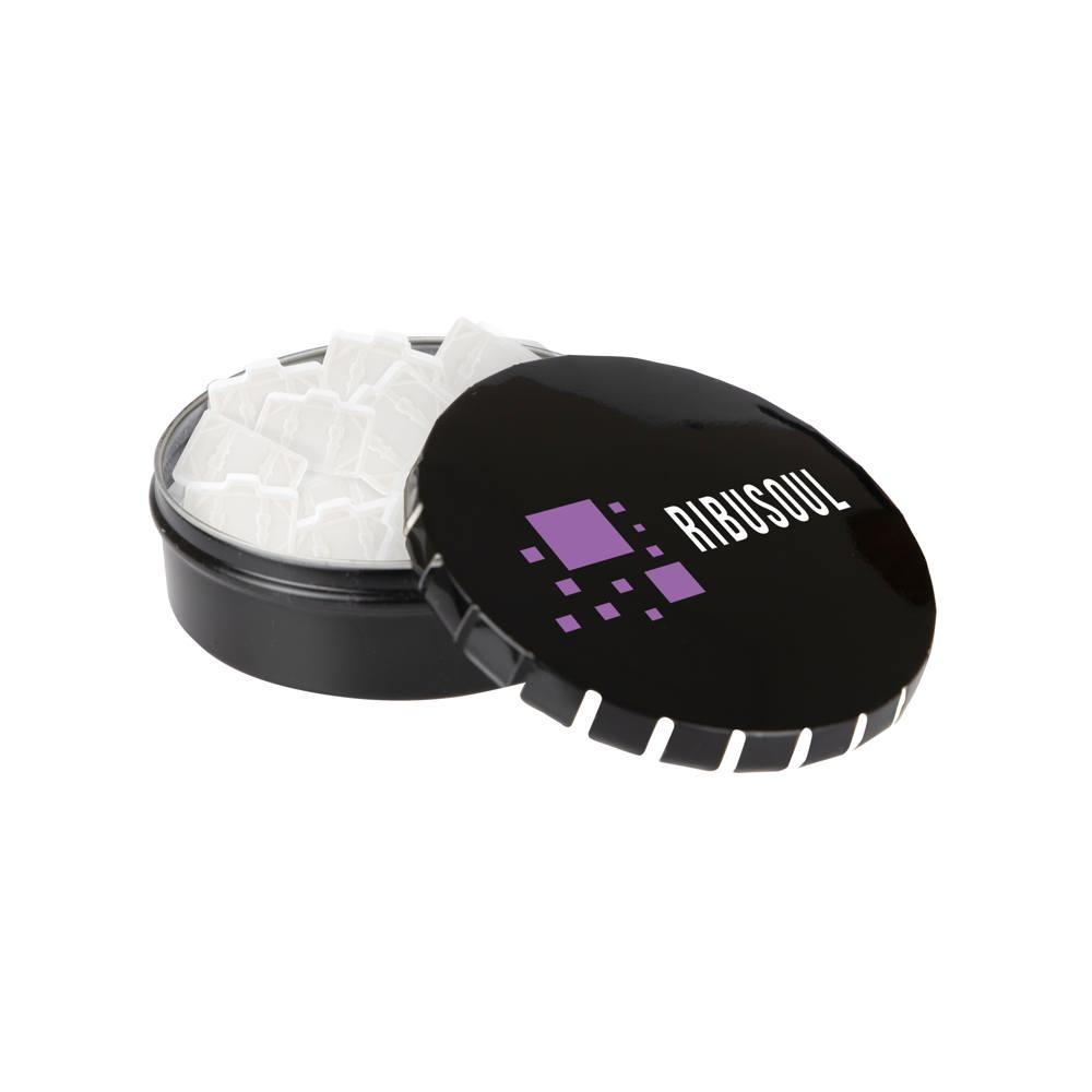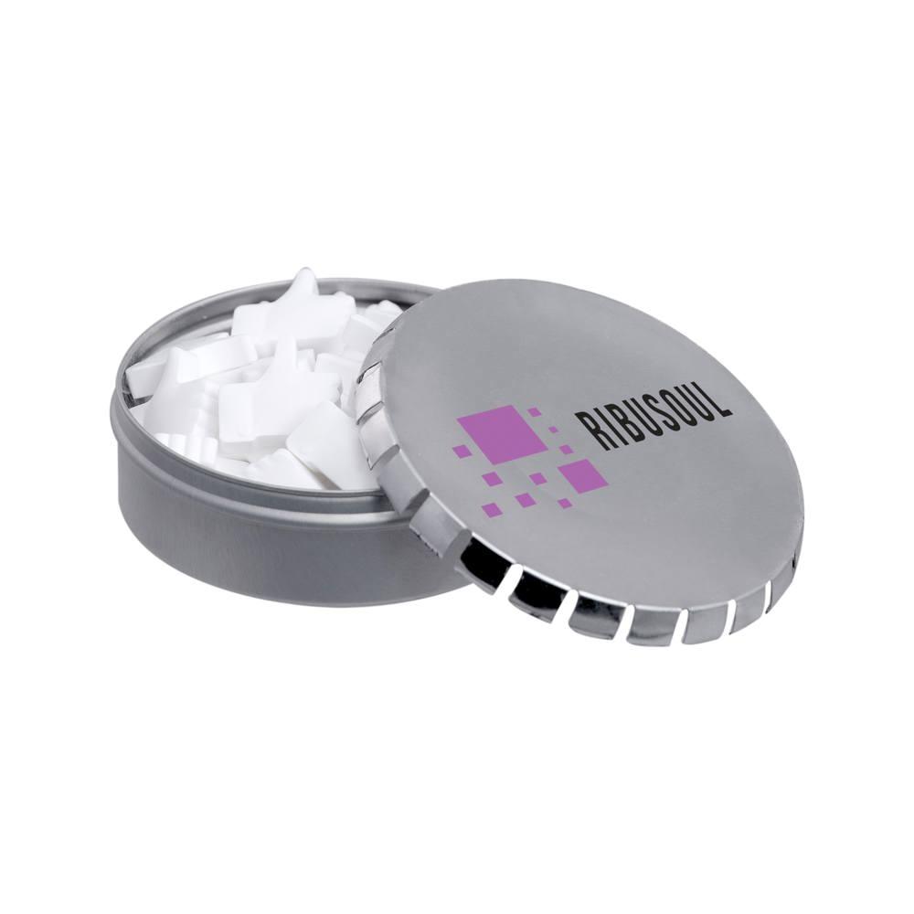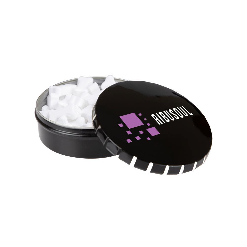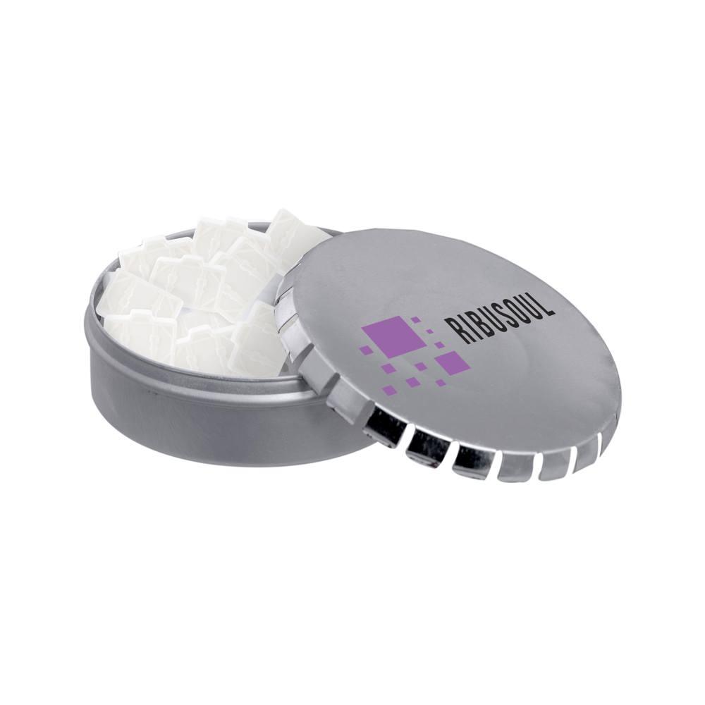 Elevate your brand visibility with this compact clic-clac tin, perfectly sized at 78 mm diameter for easy portability. Filled with approximately 50 grams of Compli'mint shaped mints, it offers a fresh, engaging giveaway that keeps your logo in front of customers long after the event.