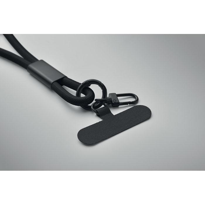 Elevate your brand visibility with this innovative cord lanyard featuring a built-in 60W charging and data transfer cable (Type-C to Type-C). Crafted from sustainable RPET material, it includes a convenient phone cord holder and key clip for everyday practicality.
