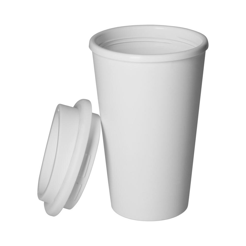 Elevate your brand visibility with this reusable to-go coffee mug, perfect for customization with your logo. Crafted from double-walled plastic for superior insulation, it keeps beverages hot or cold longer during commutes or events.