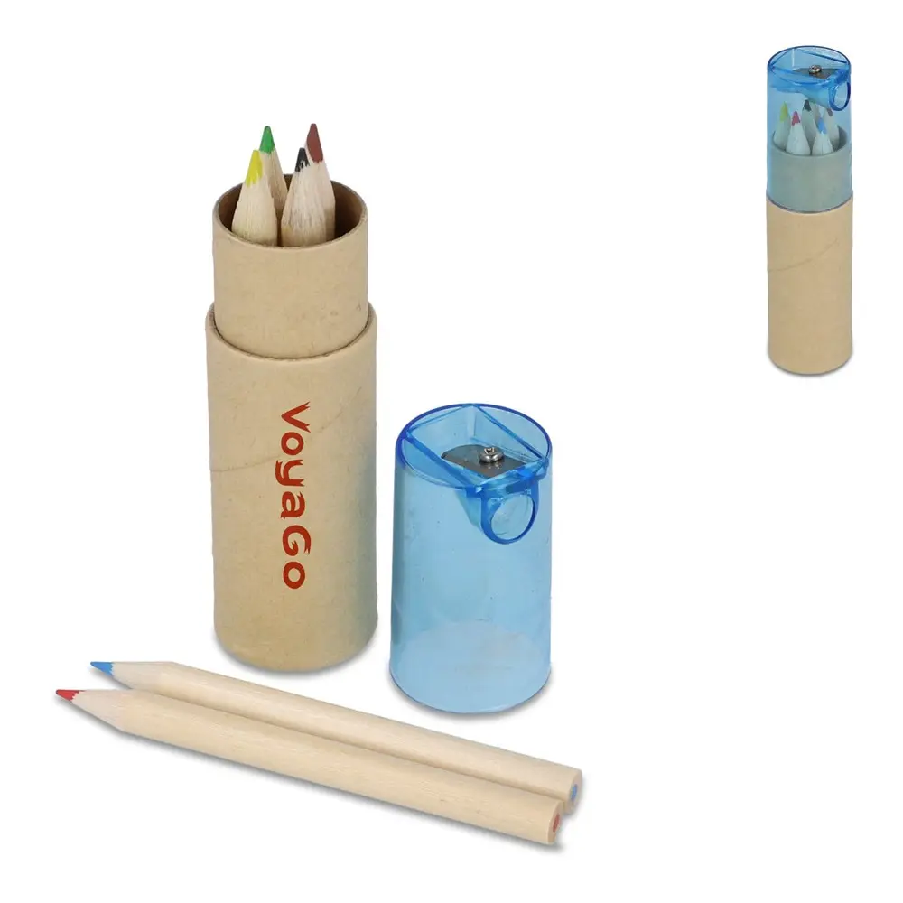 Elevate your marketing efforts with this compact set of 6 coloring pencils housed in a sturdy cardboard tube. The integrated sharpener in the lid ensures pencils stay sharp and ready for use, making it a practical choice for on-the-go creativity during events or daily promotions.