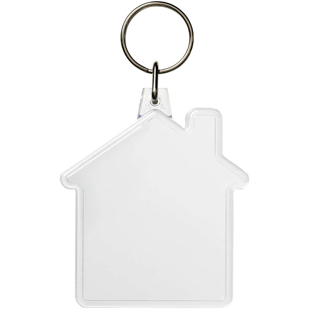 Elevate your brand visibility with this clear house-shaped keychain, featuring a durable metal split keyring. Its flat profile makes it perfect for easy mailings, ensuring your promotional items arrive safely and professionally.
