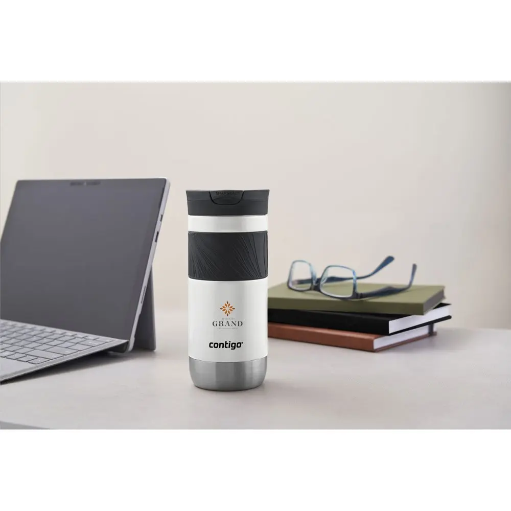 Elevate your brand with the personalized Contigo® Byron 2.0 470 ml thermo cup, ideal for marketing campaigns and events. This double-walled stainless steel thermos features vacuum insulation and THERMALOCK™ technology to keep beverages hot for up to 7 hours or cold for up to 18 hours, ensuring your recipients enjoy every sip.