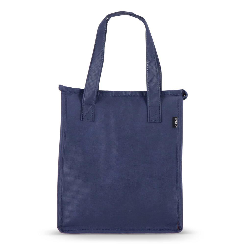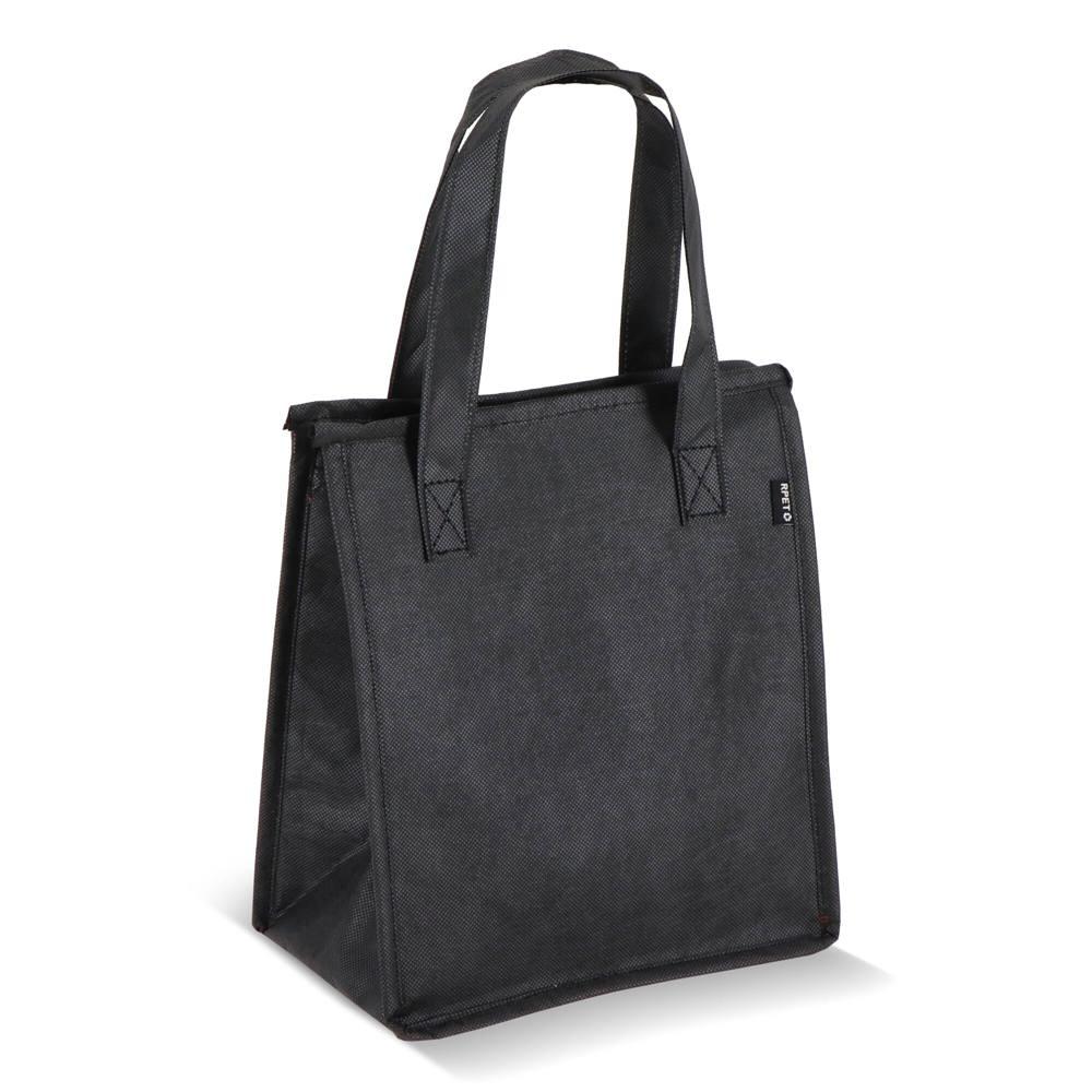 Keep lunches fresh on the go with this compact cooler bag, crafted from durable recycled PET non-woven material (75g/m²) and featuring an aluminium foil lining for superior insulation. Measuring 23 x 15 x 27.5 cm, it's lightweight, portable, and ideal for daily use.