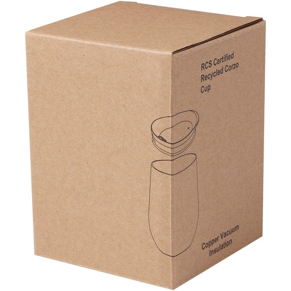 Elevate your brand with the Corzo 350 ml copper vacuum insulated cup, crafted from RCS certified stainless steel for sustainable appeal. Its double-walled vacuum construction with copper insulation maintains hot beverages for up to 6 hours and cold drinks for 24 hours, ensuring recipients enjoy perfect temperatures on the go.