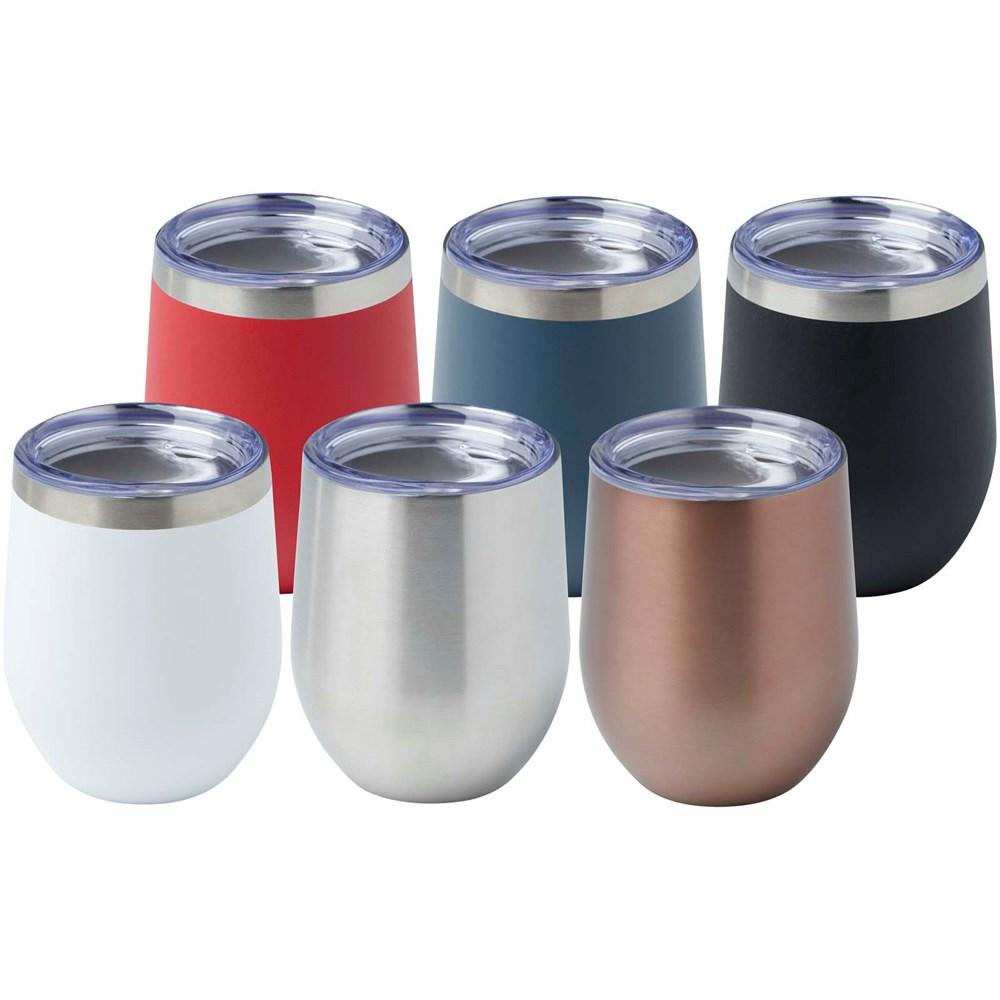 Elevate your brand with the Corzo 350 ml copper vacuum insulated cup, crafted from RCS certified stainless steel for sustainable appeal. Its double-walled vacuum construction with copper insulation maintains hot beverages for up to 6 hours and cold drinks for 24 hours, ensuring recipients enjoy perfect temperatures on the go.