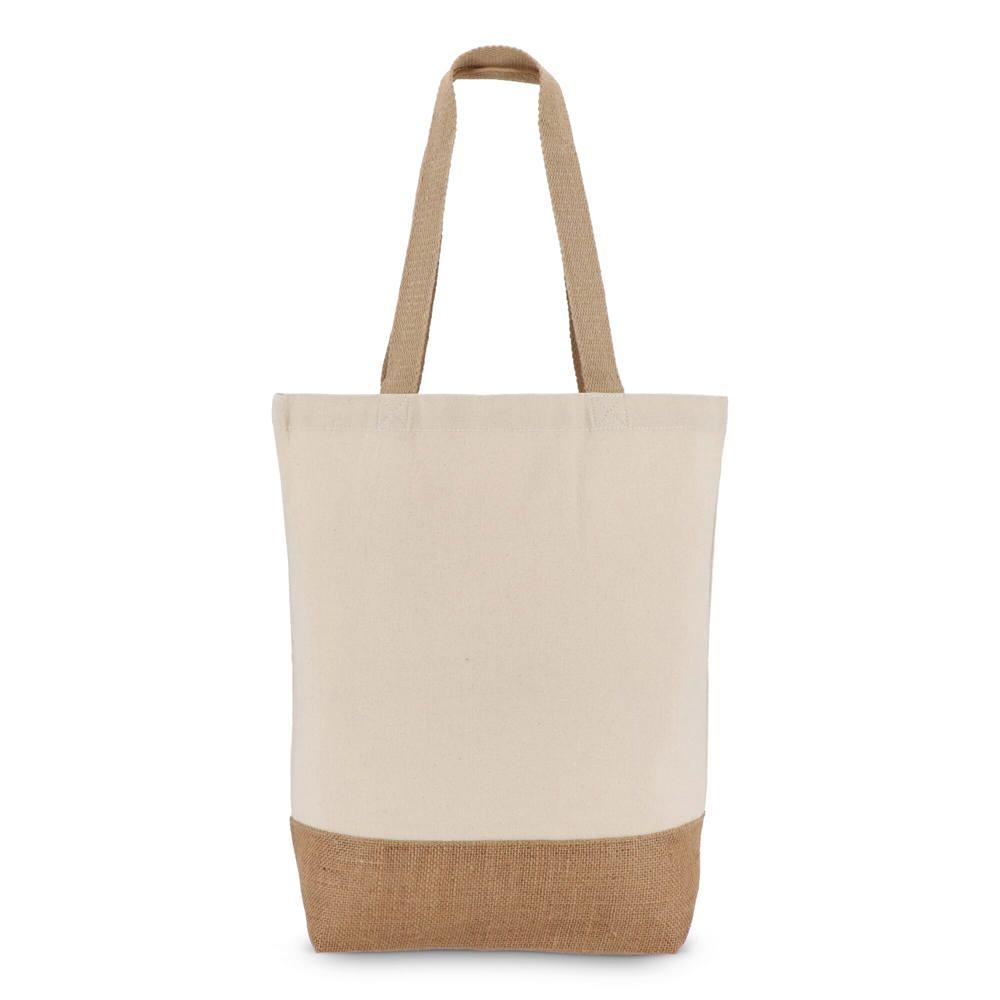 Elevate your promotional giveaways with this sturdy cotton canvas tote bag featuring jute bottom gusset. Made from robust 320gsm fabric throughout, it offers exceptional durability for repeated use.