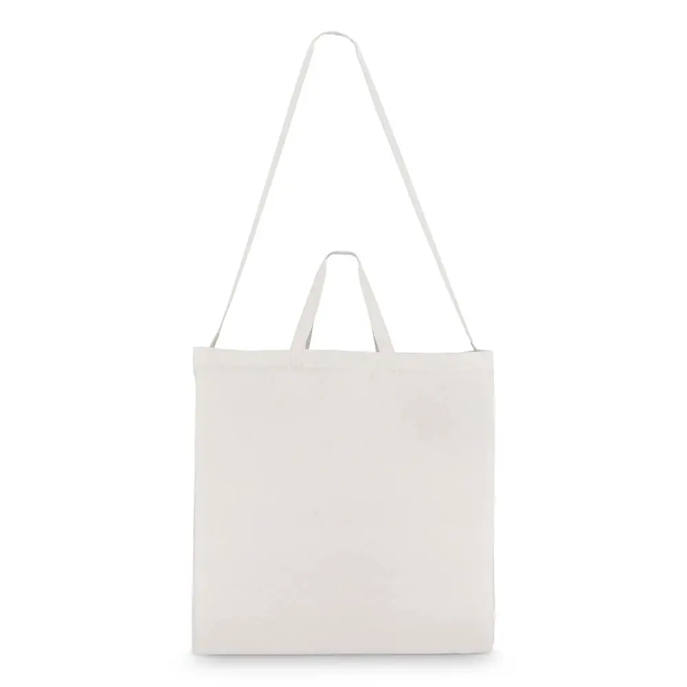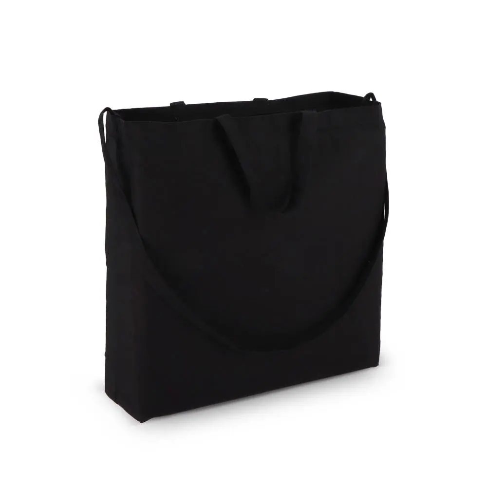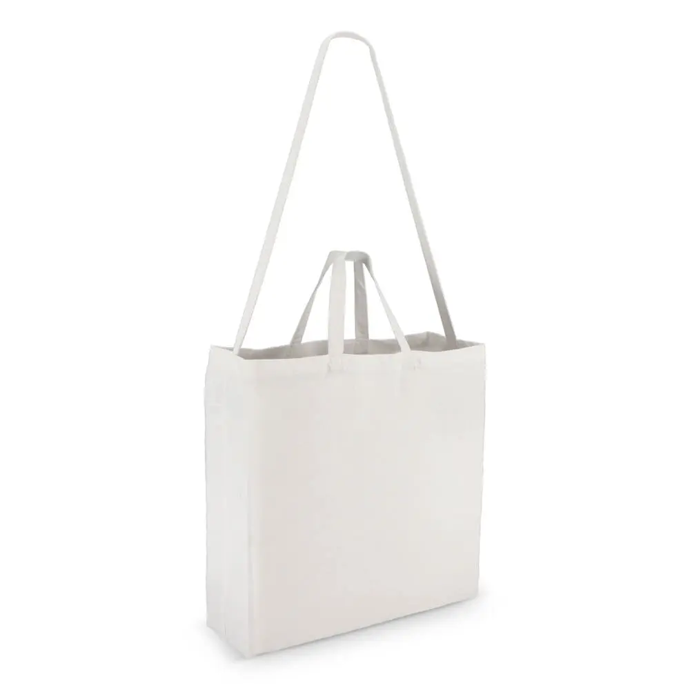 These tote bags measure 40 x 13 x 44 cm, offering ample space for essentials. The long handle supports comfortable shoulder or cross-body carrying, while two short handles allow easy hand transport. Crafted from durable 220gsm cotton, they withstand daily use and multiple events without losing shape.