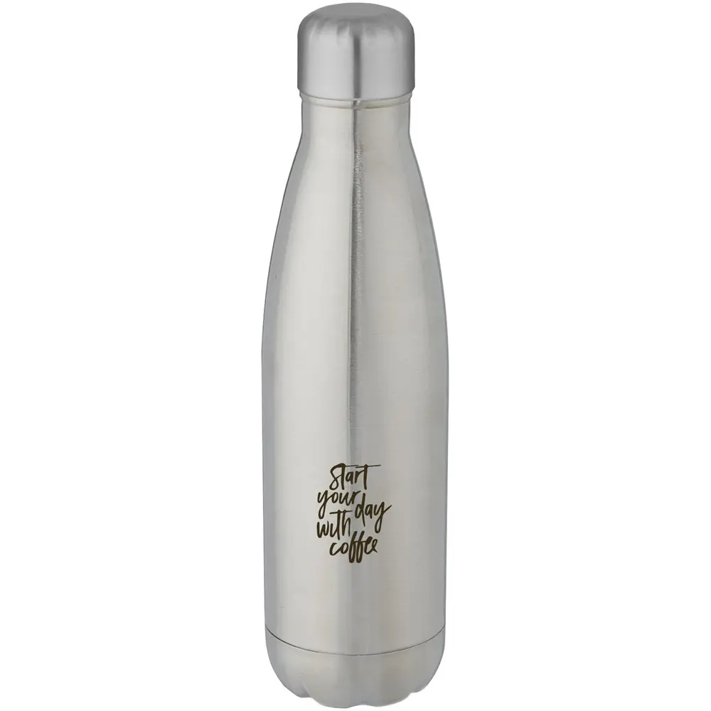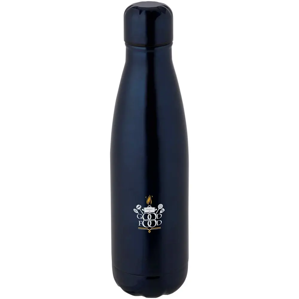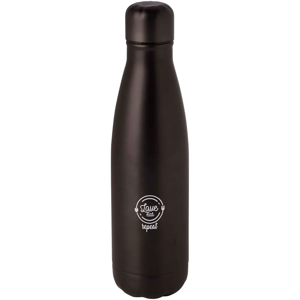 Elevate your brand with the Cove 500 ml vacuum insulated bottle, crafted from RCS-certified recycled stainless steel and recycled PP plastic for sustainable promotion. This sleek, iconic design features a stable base that fits most cup holders, making it an ideal giveaway for events, tradeshows, or client appreciation.