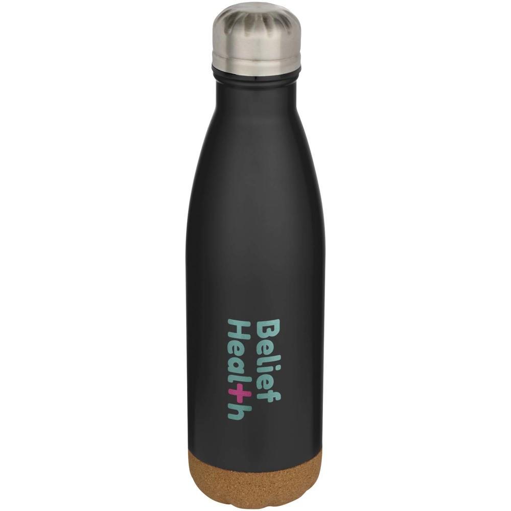 Elevate your brand with the Cove 500 ml double wall vacuum insulated bottle, a premium stainless steel water bottle featuring stylish cork details at the base. Its advanced double-wall vacuum insulation maintains beverages hot for up to 12 hours or cold for 48 hours, ensuring lasting refreshment for recipients.