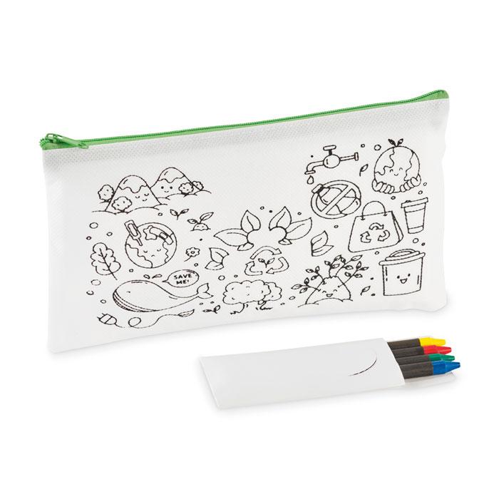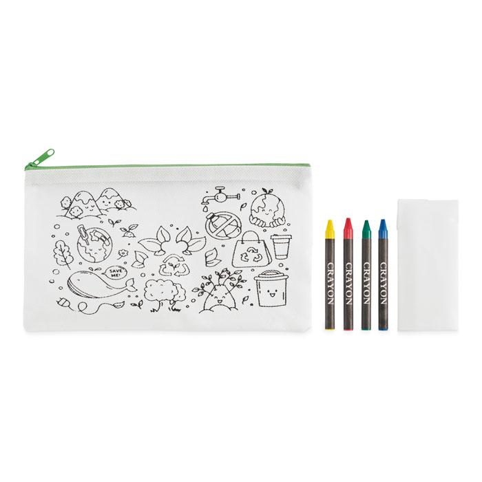 Discover the ideal promotional giveaway for events, trade shows, and back-to-school campaigns. This lightweight non-woven pencil case comes complete with 4 vibrant crayons, ready for immediate use by kids and families.
