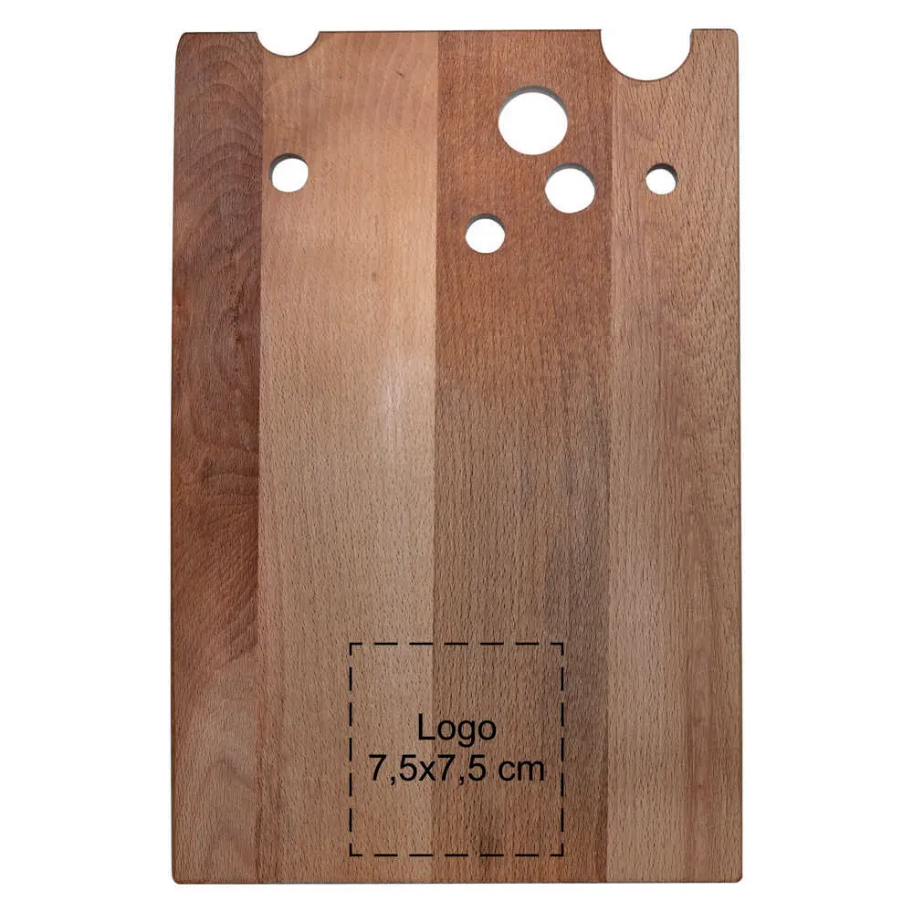 Elevate your brand's visibility with our personalized Swiss Cheese Cutting Board made from sustainable beech wood. This 30x20 cm playful design, shaped like iconic Swiss cheese, serves as a versatile promotional gift for marketing pros and event organizers. Customize it with your logo for memorable client giveaways at events or as branded keepsakes.