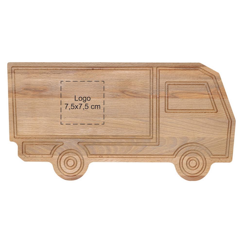 Elevate your promotional giveaways with this eye-catching truck-shaped beech wood cutting board, measuring 40x20 cm. Crafted from durable beech wood, it features a stunning natural grain pattern and smooth finish for long-lasting appeal.