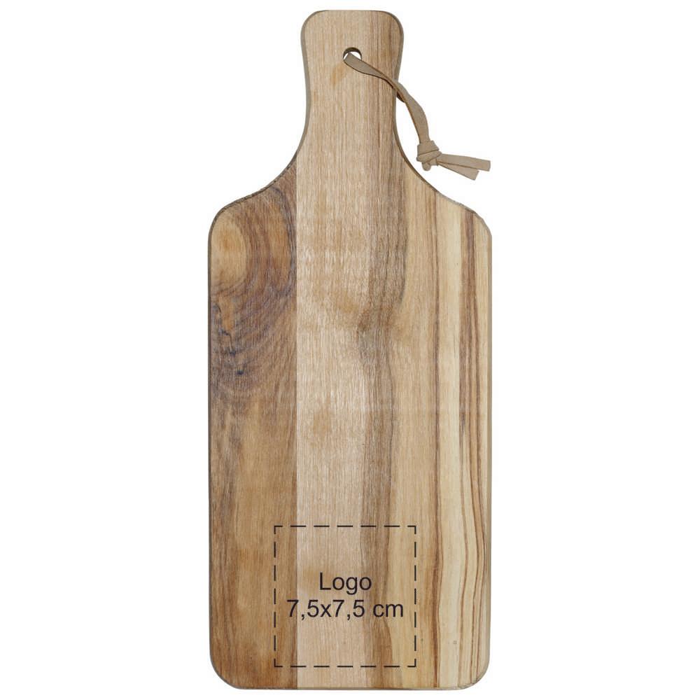 Elevate your brand with our customizable rubberwood cutting board featuring a convenient handle, perfect for promotional giveaways and corporate events. Crafted from sustainable rubberwood sourced from rubber trees without felling them, this eco-friendly board measures 36x15 cm—ideal for serving cheese, bread, snacks, or as a practical cutting surface.