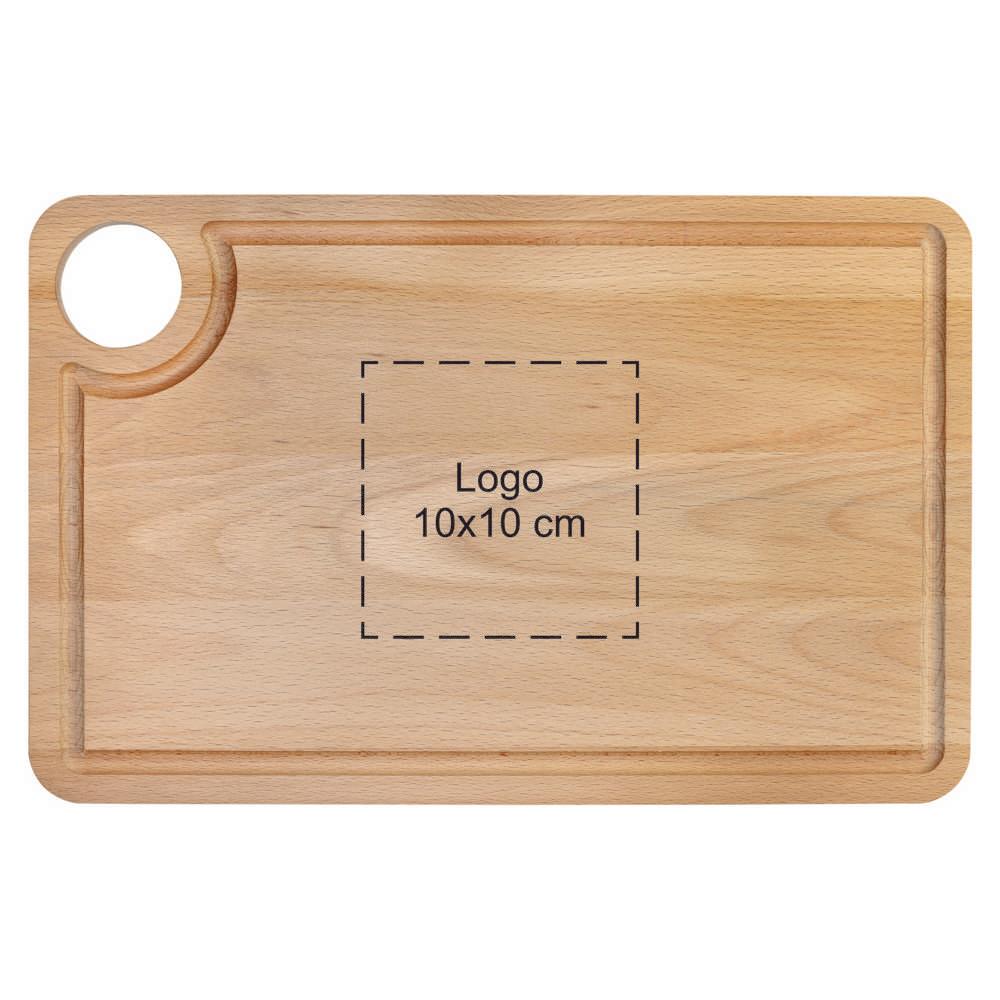 Crafted from high-quality beech wood, it combines timeless style with exceptional longevity, ensuring your logo-printed message endures. The integrated juice groove captures drips effectively, keeping surfaces clean and enhancing food safety—perfect for professional presentations or home use by recipients.