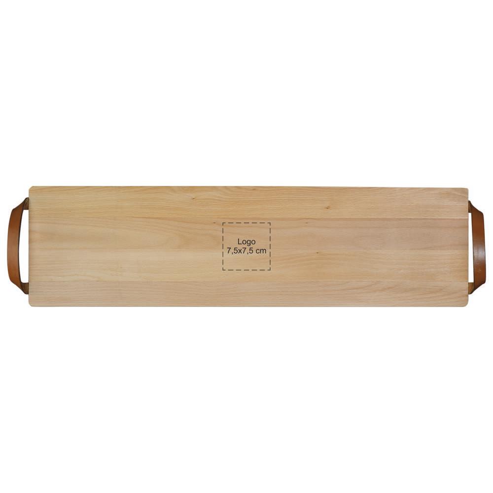 Elevate your brand with our customizable beech wood cutting board featuring premium leather handles. Ideal for marketing professionals and event organizers, this stylish serving board (69 x 19 cm) offers ample space for cheese platters, snacks, and delicacies, making it a standout promotional gift.
