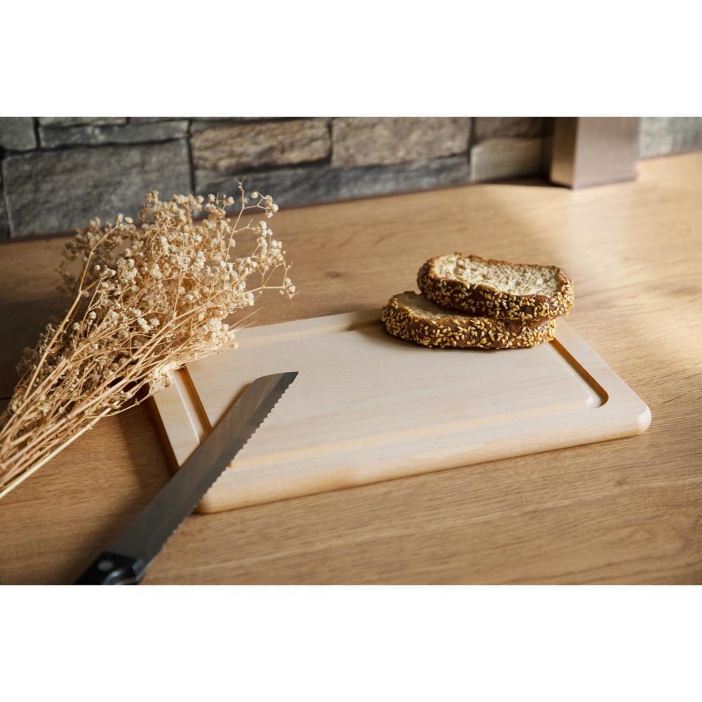 - Integrated milled groove along the edge to catch juices and prevent spills, ensuring mess-free food prep.