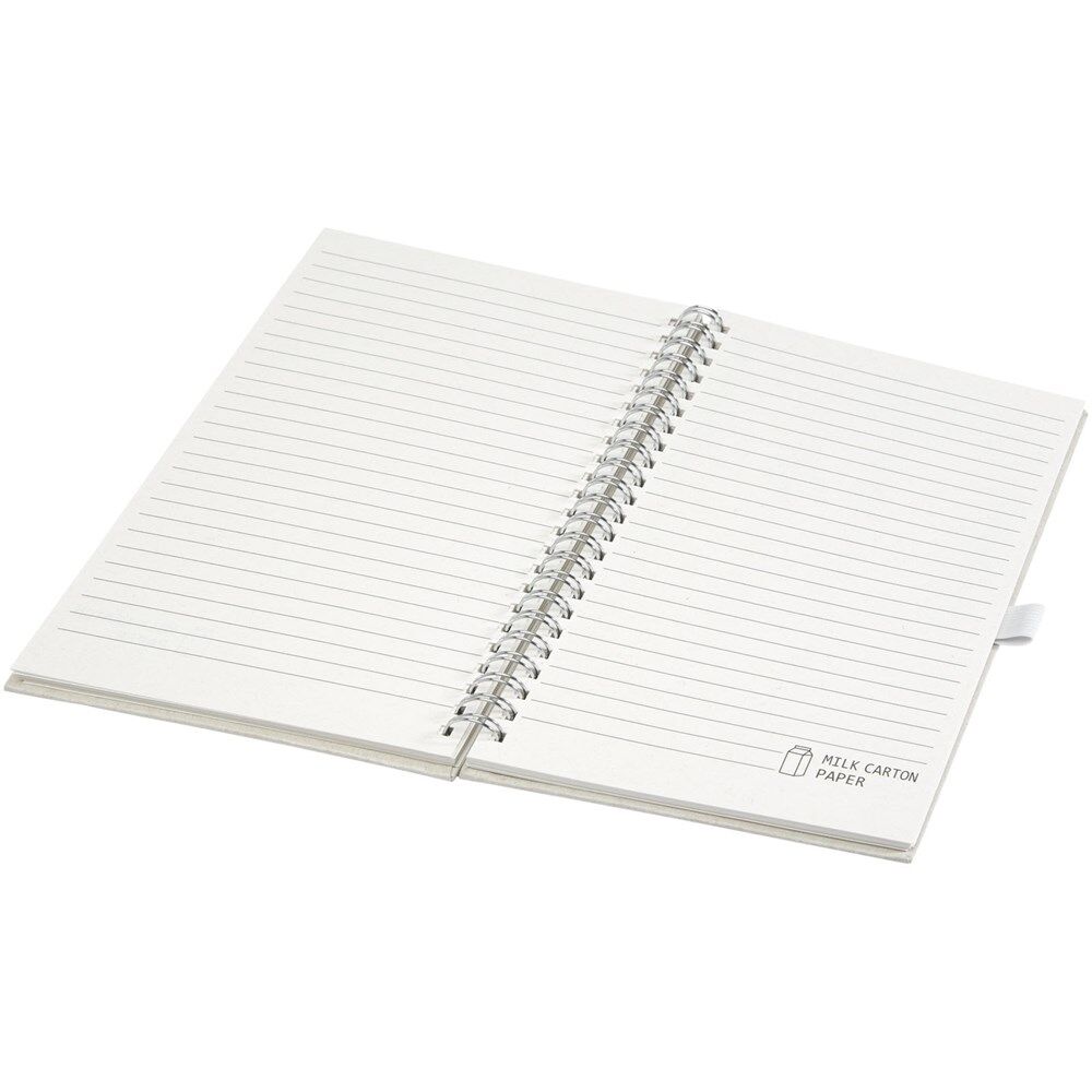Elevate your brand with this eco-conscious A5 spiral notebook, crafted from up to 70% recycled milk cartons. These notebooks transform collected and processed waste into high-quality, lined sheets of 70-80 g/m² paper, offering a practical and planet-friendly giveaway for your events or client appreciation campaigns.