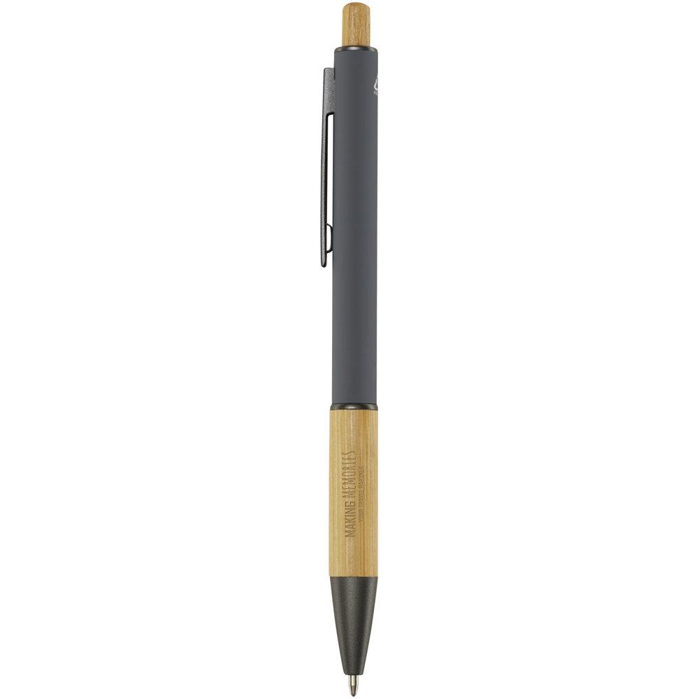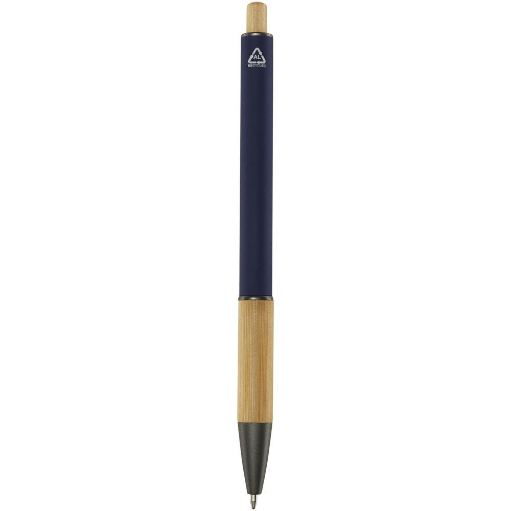 Discover the Darius aluminium ballpoint pen, an eco-conscious choice perfect for personalised promotional giveaways. Crafted from recycled aluminium, it demands less energy in production compared to virgin materials, minimises landfill waste, conserves natural resources, and helps lower greenhouse gas emissions. The push button and barrel base feature sustainable bamboo for a premium, natural feel.