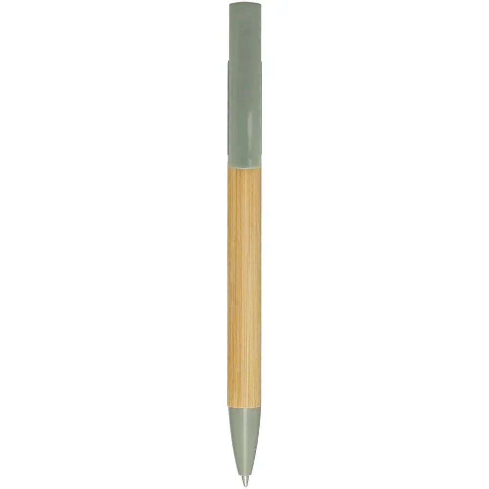 Elevate your brand's visibility with the Delfina Phone Holder Pen, a sustainable bamboo ballpoint that doubles as a convenient phone stand. Crafted from FSC-certified bamboo for the barrel, with recycled plastic accents and a durable brass tip, this eco-friendly promo item appeals to environmentally conscious audiences.