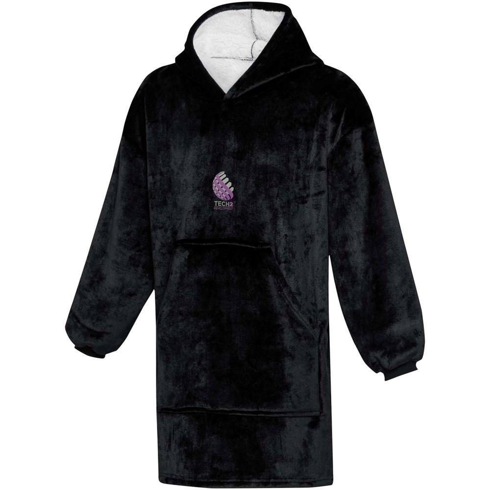 Elevate your brand visibility with this customizable hoodie blanket, ideal for marketing campaigns, events, and corporate giveaways. Crafted from 100% GRS-certified polyester flannel on the outside and lined with soft sherpa fleece inside, it offers exceptional warmth and durability while supporting sustainable practices.