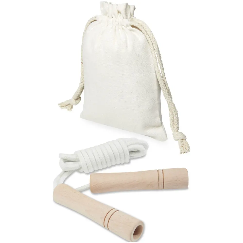 Elevate your brand's promotional efforts with the Denise Wooden Skipping Rope in Cotton Pouch, a versatile fitness gift that combines enjoyment and health benefits for recipients. Ideal for marketing professionals and event organizers, this customizable skipping rope encourages active lifestyles while showcasing your logo through sustainable laser engraving on the ergonomic beech wood handles.
