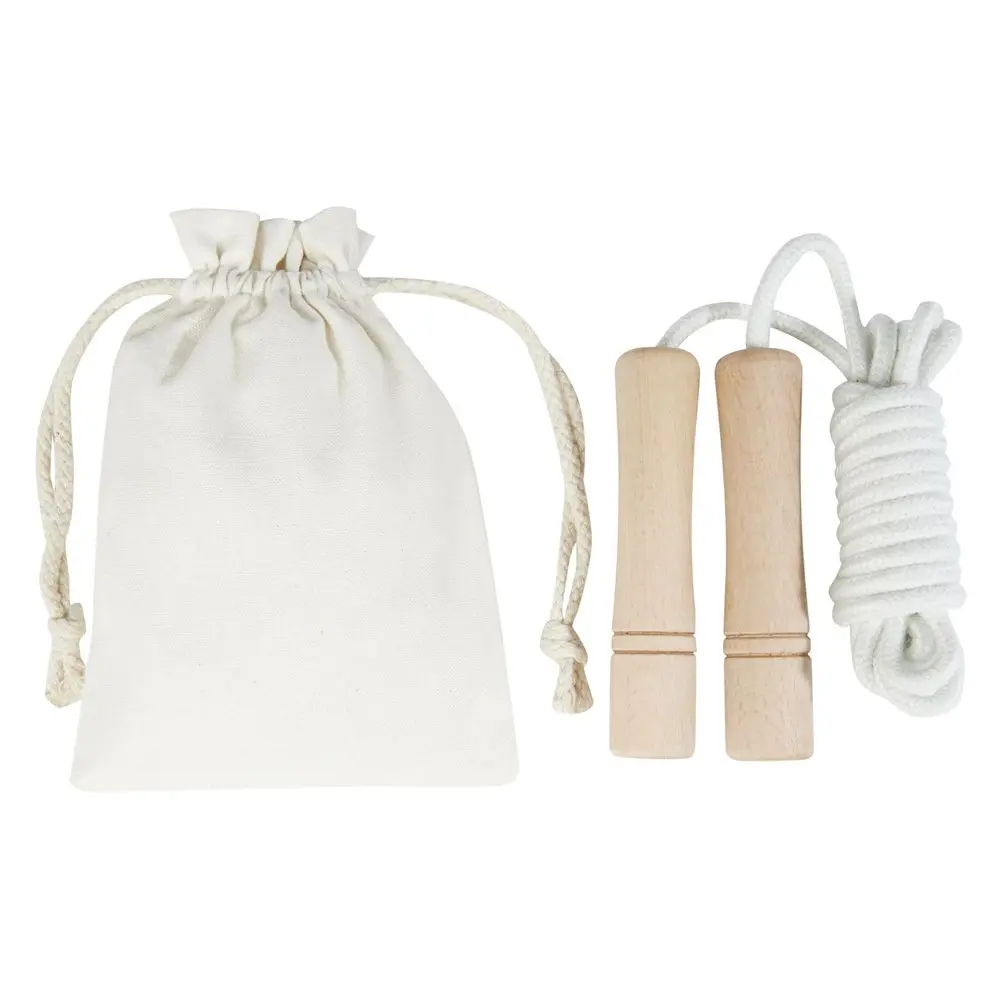 Packaged in a soft cotton storage pouch (18 x 13 cm), this skipping rope (overall size: 12 x 18 x 3.5 cm) is easy to carry and distribute. The pouch keeps it protected and ready for on-the-go use, while the overall design adds a touch of sophistication to your promotional lineup.