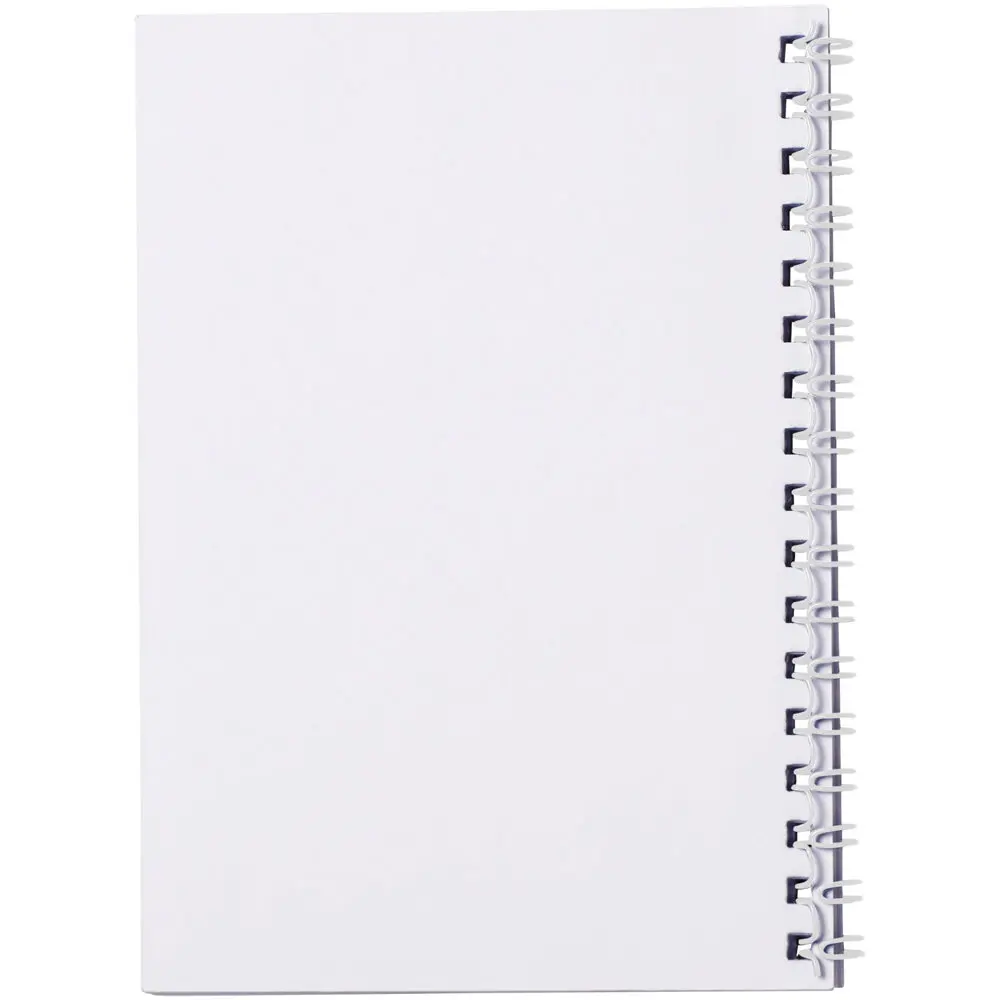 Elevate your brand's visibility with this compact A6 spiral notebook, perfect for marketing campaigns and corporate events. Designed for easy personalization, it features 50 blank sheets of high-quality 80g/m² paper, allowing you to customize pages with lined, squared, or dotted layouts to suit your needs. The durable 250g/m² glossy card front cover and 450 micron transparent polypropylene back provide robust protection, ensuring longevity during daily use.