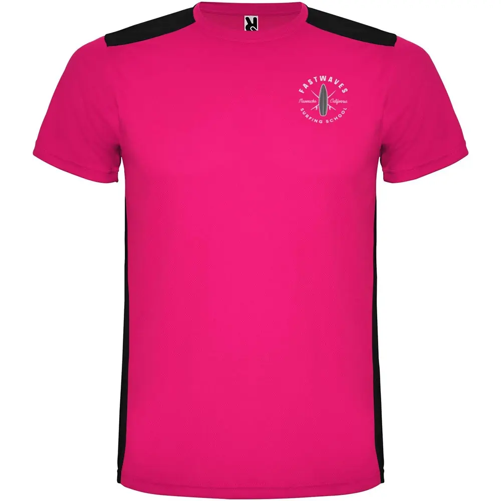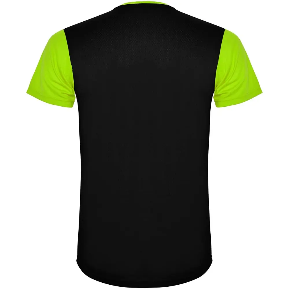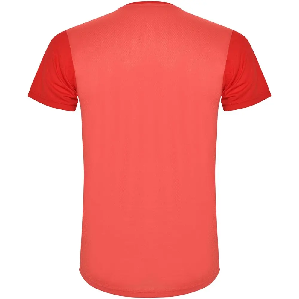 Keep your young athletes cool and comfortable with the Detroit short sleeve kids sports t-shirt, crafted from 100% polyester mesh with a cool fit finish at 130 g/m². This technical, breathable fabric features easy-dry moisture absorption, a crew neck, and a combination of bird's eye front and 3D mesh back for optimal airflow during active play or events. The slightly longer back pattern and decorative zigzag stitching add style, while the removable label ensures seamless customization for your brand's logo printing.