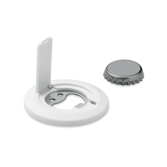 This compact magnetic phone stand securely holds smartphones, doubles as a convenient viewing stand, and features an integrated bottle opener for everyday utility—making it an irresistible giveaway that recipients will use repeatedly.
