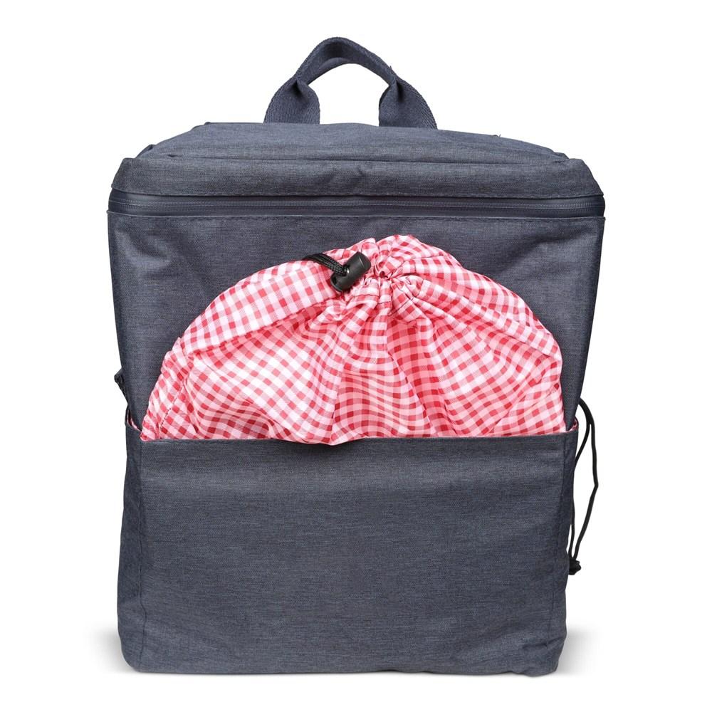Elevate your brand visibility with our customizable Double Bicycle Picnic Pannier, crafted from sustainable heather R-PET material. Ideal for marketing professionals and event organizers, this versatile pannier features an insulated compartment on one side to keep food and drinks refreshingly cool, while the other side accommodates a complete tableware set for four. A dedicated pocket securely holds a wine bottle, and the stylish checkered lining adds a premium finish.