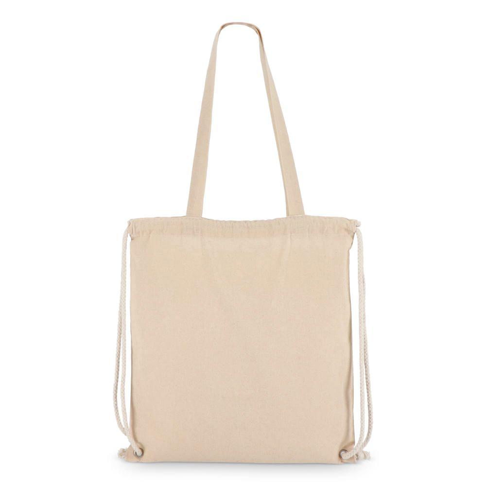 Elevate your promotional game with this classic 140gsm cotton tote bag, measuring 38x42 cm. Featuring long handles for comfortable carrying and an innovative drawcord closure, it offers dual functionality—use it as a standard tote or secure it like a drawstring backpack for ultimate versatility.