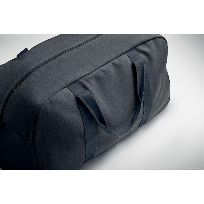 Elevate your brand with this durable duffle travel bag crafted from 450 gr/m² recycled fabrics, blending 60% recycled cotton and 40% recycled polyester for an eco-friendly option that appeals to sustainability-focused audiences.