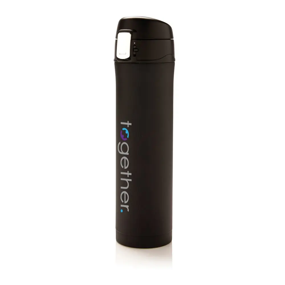 Elevate your brand with the Easy Lock Vacuum Flask - 450ml, a premium promotional essential for marketing teams and event organizers. Crafted from recycled stainless steel with 76% recycled content (RCS certified), this BPA-free flask underscores your commitment to sustainability while showcasing your logo through custom imprinting.