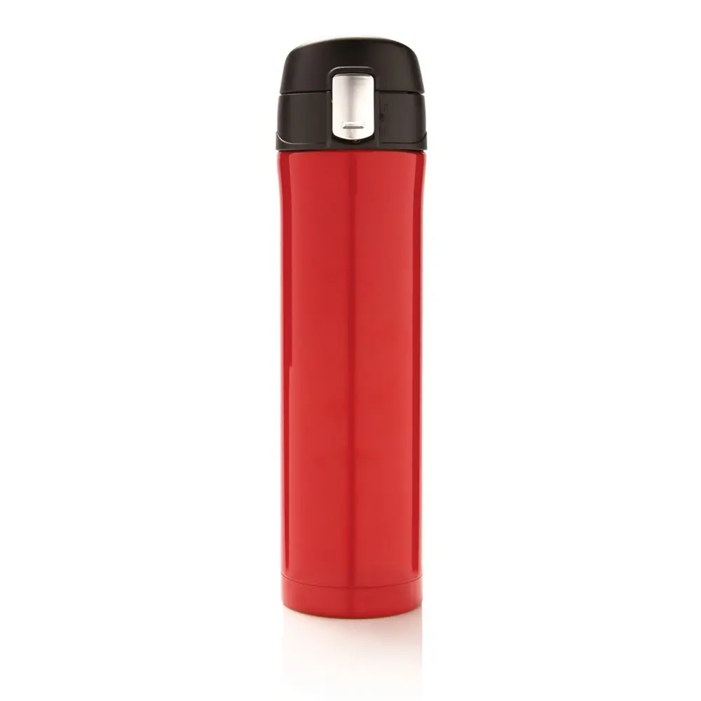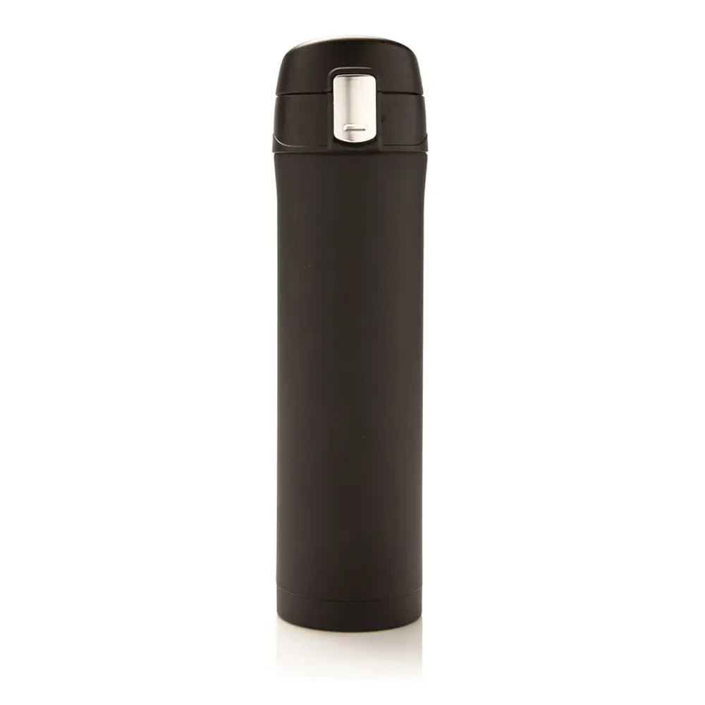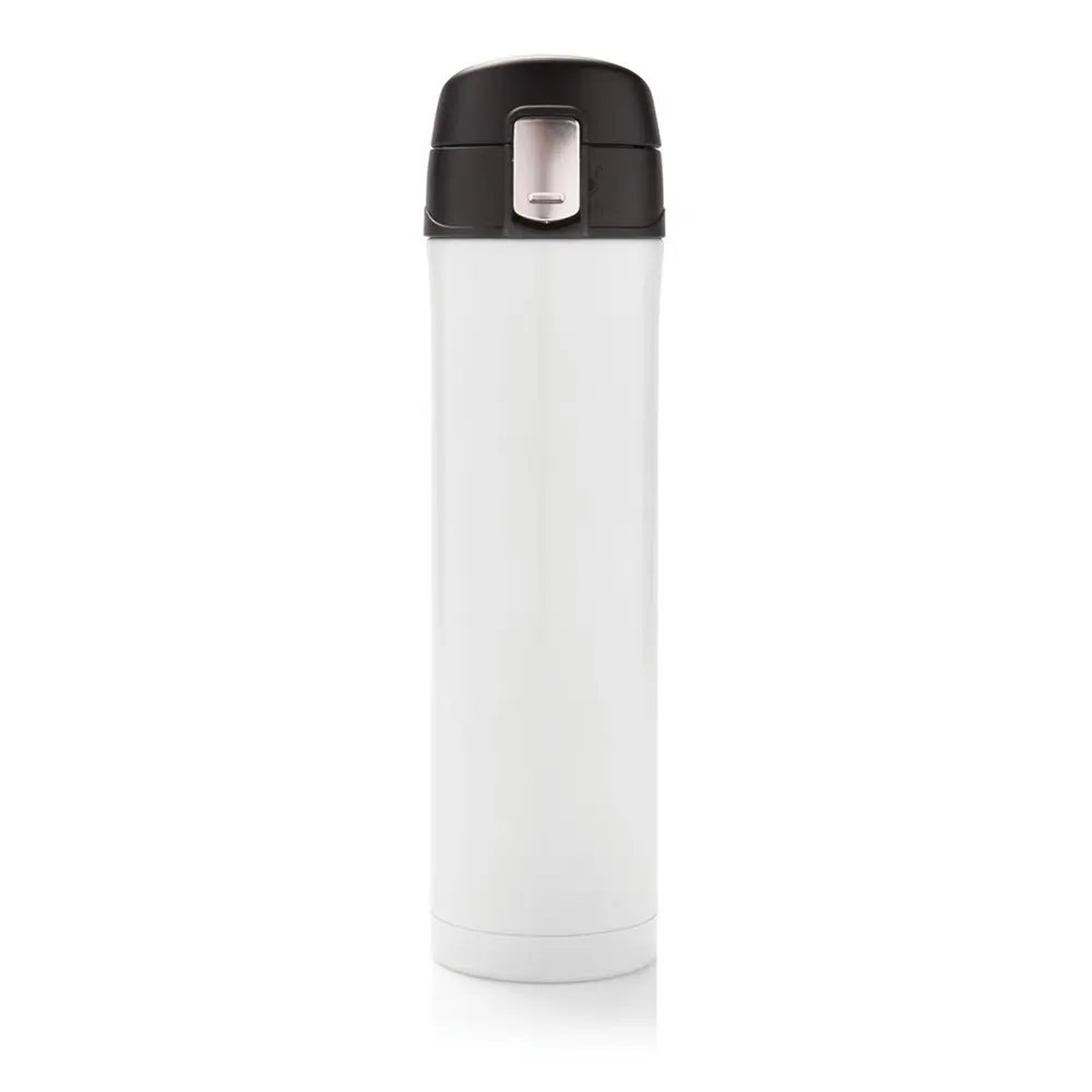 Keep beverages hot for up to 5 hours or cold for up to 15 hours, thanks to double-wall vacuum insulation. The lockable lid prevents leaks, ensuring mess-free transport—ideal for on-the-go clients receiving your branded giveaway. One-handed drinking design adds convenience, and its compact size (ø65 x 255mm) fits perfectly in car cup holders.