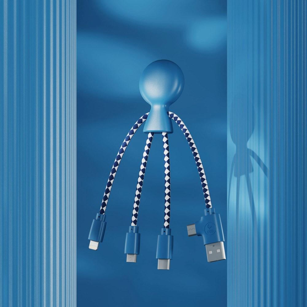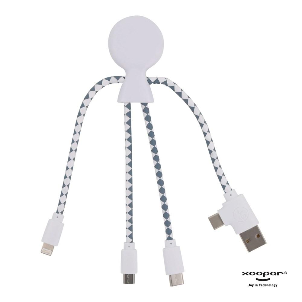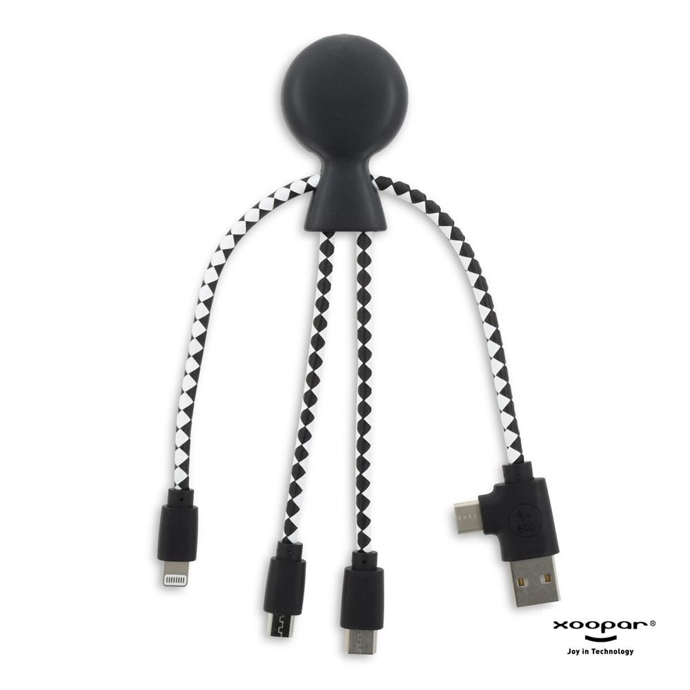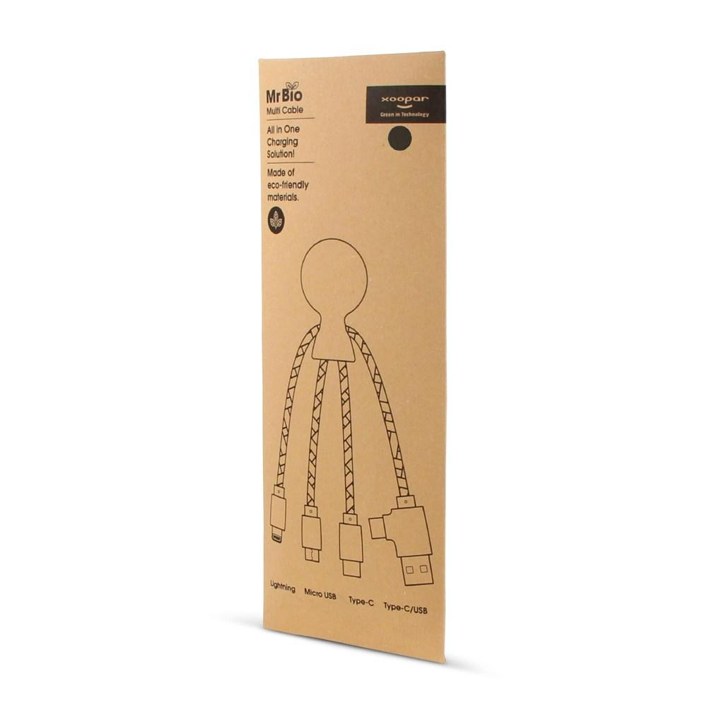 Mr. Bio is a multi-charging cable, with a dual USB & USB-C input connector and three different connectors to charge your devices ecologically! Mr. Bio is made of recycled plastic & DuPont Tyvek cables. The total recycled content is 61% based on the item weight. The cable is packed in a sustainable FSC-certified paper envelope. Xoopar products cannot be sold in France and Spain.